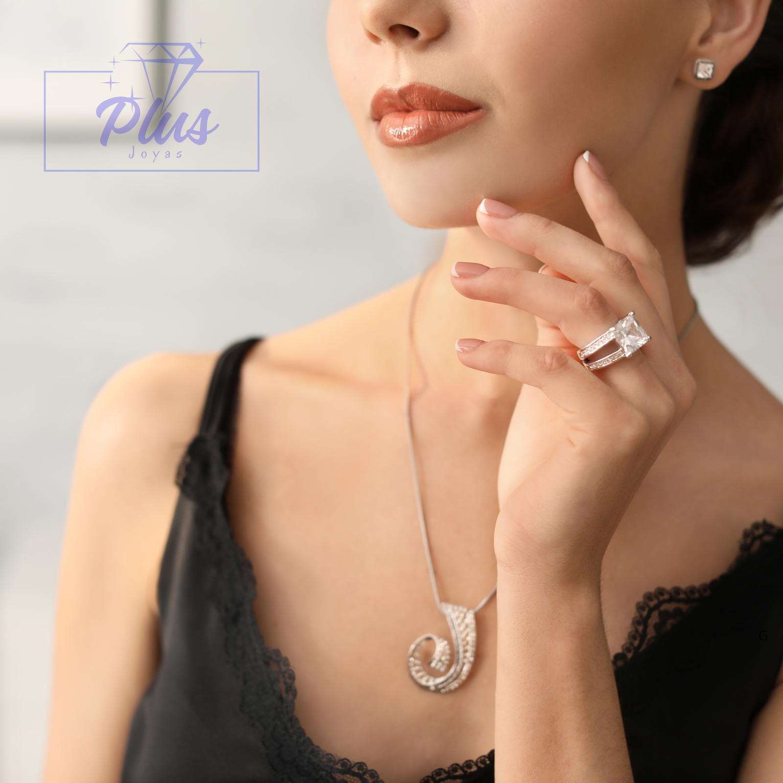 CONJUNTO DE PLATA FINA PUNTO DE LUZ CIRCÓN SIN VALIER